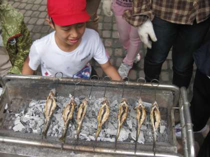 串をさせたら、塩をふってもらっていよいよ焼始めます。うまく焼けるかな。