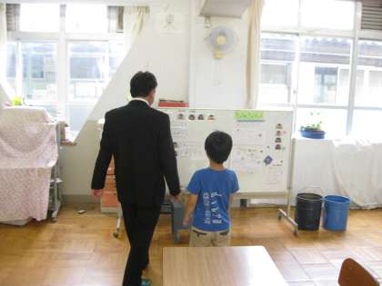 ひまわり学級では,子どもたちがいきいきと学習している様子を参観され,子どもたちと笑顔で接しておられました。