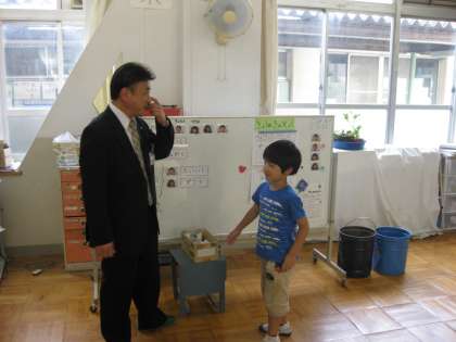 昨日は,教育委員会指導部の大林照明部長自ら学校視察にこられました。学校全体をまわられ子どもたちの学習の様子や学校環境について視察されました。