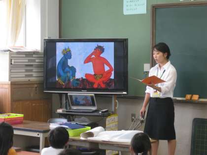 2年生の教室で道徳の授業公開がありました。題材は「泣いた赤鬼」です。古くからあるお話です。子どもたちは,赤鬼の気持ちや青鬼の気持ちをしっかりと考えることができました。