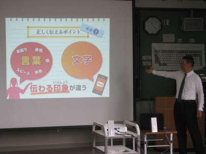 この文を相手にうまく伝えるためにどうしたらいいかという質問に「ハートマークをつける」とか,「上向きの矢印をつける」というような発言がありました。多くの子どもたちが結構ラインやメールをやりとりしているのかな?