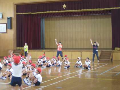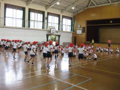 体育館では,2年生がダンスの練習中です。担任の先生方も軽やかに・・・