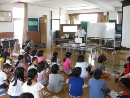 5・6年生は,ふれあいサロンで京都ジュニア検定に向けての勉強会です。運営協議会の委員さんで,府立資料館の学芸員をしておられる若林さんからお話を聞きました。映像をまじえてとても興味深いお話をしていただきました。今回を含めて,年間3回実施されます。他の学校では,この様な取組はないと思います。