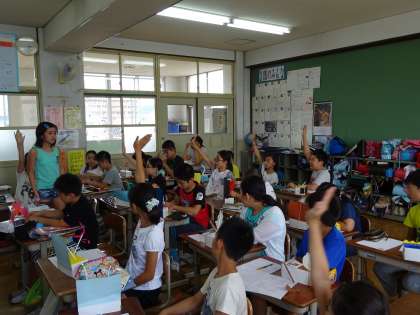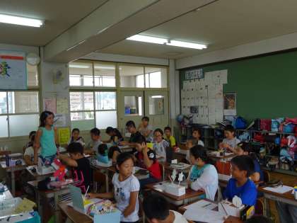 作品を動かして,表現のよさや工夫したところについて話し合いました。
