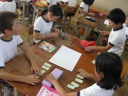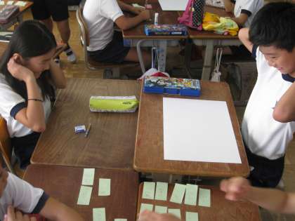 4年生は,自分たちで考えた生き物を付箋に書いて,それを分類していきました。