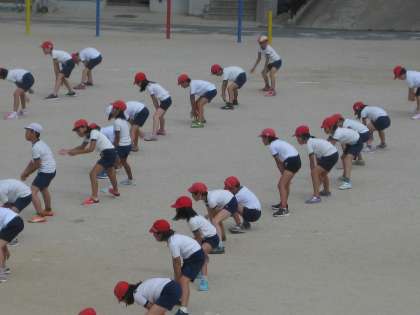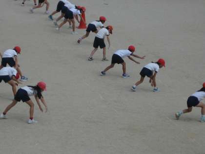運動場から威勢のよいかけ声が聞こえてきました。4年生が集団演技の練習をしていました。元気一杯です。本番が楽しみです。