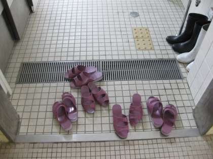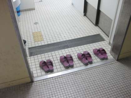 西校舎2Fのお便所です。片方は,きっちりとそろっていますが,もう片方のお便所はちょっと残念です。でも,バラバラではなく,一組ごとにはそろっていますが・・・・