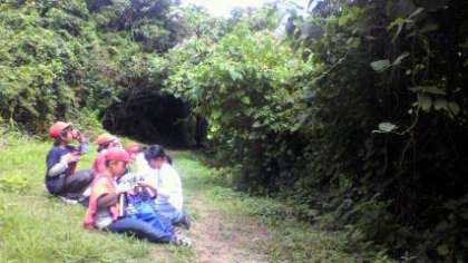 グループに分かれ、問題を解きながら山道を回ります。