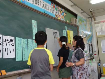 字配りと点画のつながりに気を付けて書くことができるように注意しました。