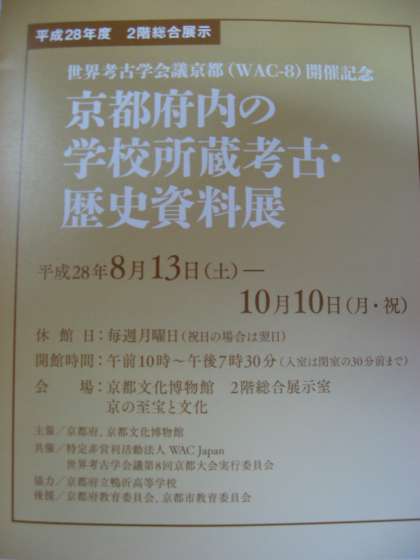 今,「京都府内の学校所蔵考古・歴史資料展」が京都文化博物館で行われています。