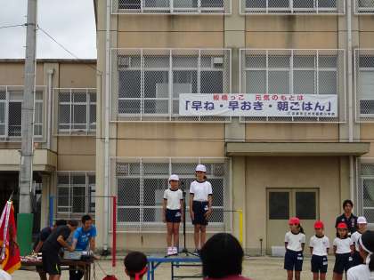 得点発表や全校準備運動の練習をしました。