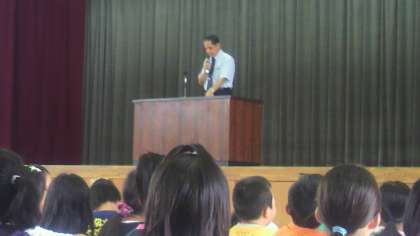 今朝,朝会で,校長先生から「夏休みも終わりました。これからは行事に向けて頑張ろう」という話を聞きました。その後,新しい友達や先生の紹介がありました。