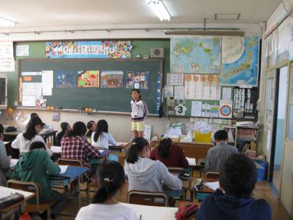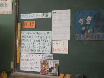 6年生のこの教室では,自分の描いた絵の工夫したところを発表していました。人の工夫したところをしっかりと聞いて,次の絵を描くときに自分なりに取り入れることができればいいですね。