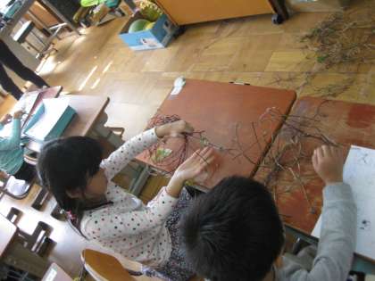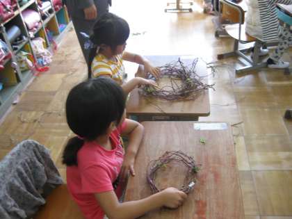 1年生の教室では,種取りを終えたアサガオのツルを有効に活かしています。どうやら,リースのようなものを作るようです。出来上がりが楽しみです。