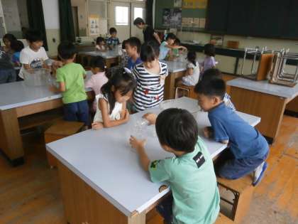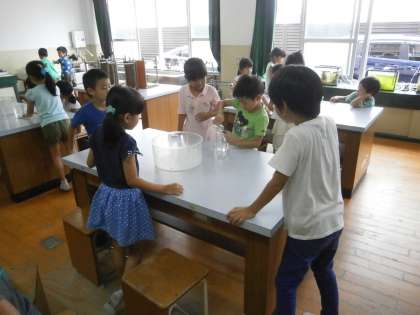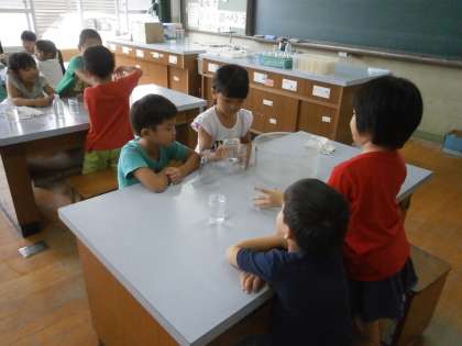 ということで,実際に水を使って調べました。しかし,教室でやってしまうと水だらけになってしまう恐れが…。