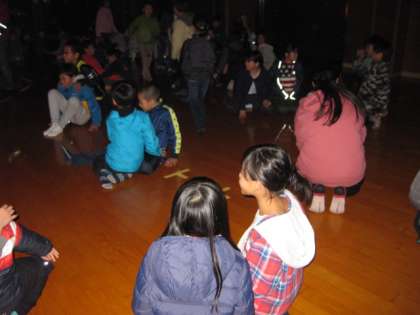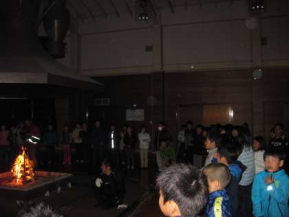 たぶん一番の思い出になるキャンプファイアが始まりました。今日のこの日のために、リクレーション係りの子供たちは、何回も練習をしてきたものと思います。