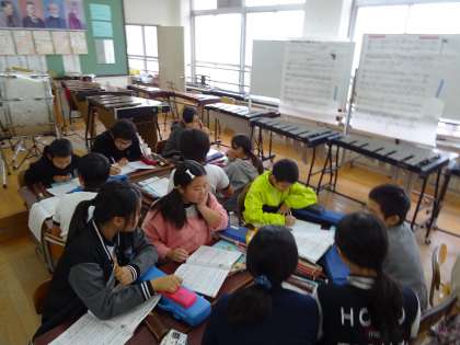 グループで,音量のバランス,速度,強弱の変化など,曲想に合った表現を工夫して合奏しました。