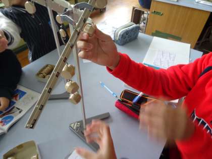 実験用てこを使って,うでの傾きを調べました。