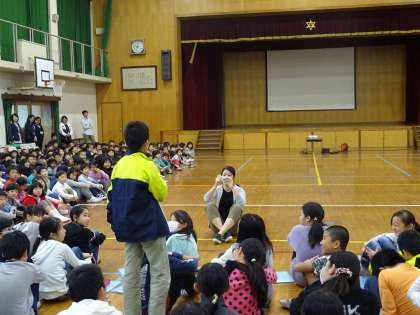 2年生の発表の様子です。体育の学習で学んだことを発表し,全校交流をしました。