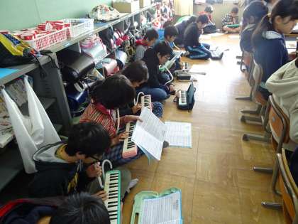 パート練習を行い,全体で音合わせをしました。