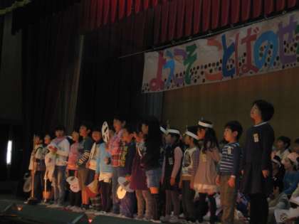 はじめのことばに引き続き1年生の発表です。国語で学習したことや,それを少し発展させたことをしっかりと発表してくれました。