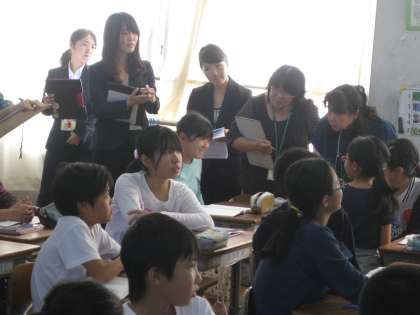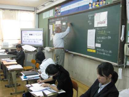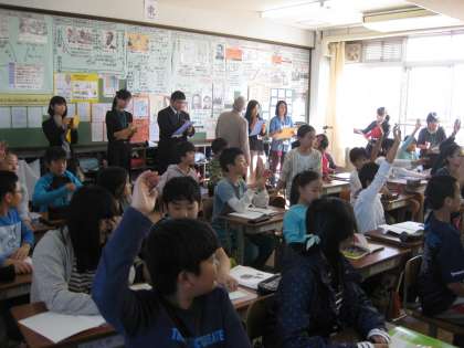 この画像は,6年生の社会科の授業研究会の様子です。指導助言に,元京都市総合教育センター所長,現在,佛教大学 教授の砂田信夫先生においでいただき,研究を深めました。