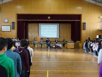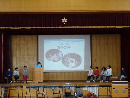 全校合唱の後,今回は4年生の発表でした。みさきの家の宿泊学習を通して学んだことについて,堂々と発表してくれました。