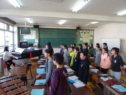卒業式に向けての歌を歌いました。