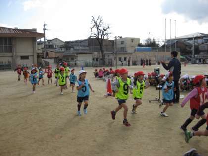 2時間目は,1年生の持久走大会です。初めての持久走大会です。幼稚園や保育園などで経験している子どもたちもいるかもしれませんが,その時とは距離も時間も違います。さて,どんな走りを見せてくれるのでしょうか。