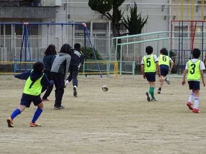 サッカー部も今年度最後の活動でした。6年生を中心に,先生チームとの対戦を楽しみました。子どもたちは,きびきびと動き続けました。