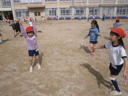 1年生は体育科でなわとびをしています。