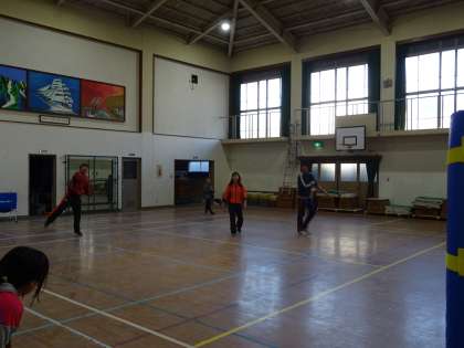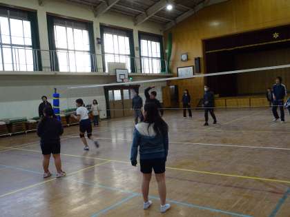 バレーボール部最後の活動です。先生チームとの対戦を楽しみました。6年生チームはレシーブやトスもしっかりとできており,先生チームを苦しめました。