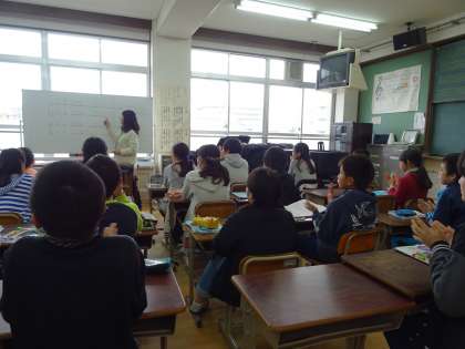 最後の学級単位での学習でした。リズム打ちの楽しい掛け合いをしました。