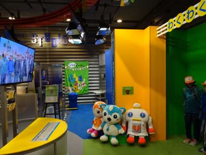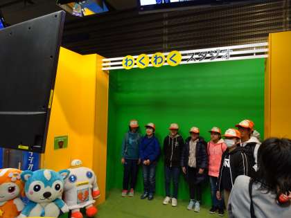 まずは,クロマキーという技術を使った撮影に挑戦しました。かわいいキャラクターとの共演を果たしました。