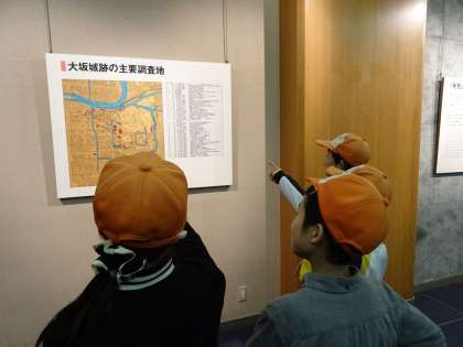 大阪城天守閣・博物館の見学開始です。館内で動画や展示物を見学しました。