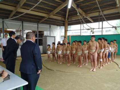 10月8日(土)京都府立鳥羽高等学校において,「第19回鳥羽高校こども相撲大会」が開催されました。1年生から6年生の本校の男子児童15名が参加しました。