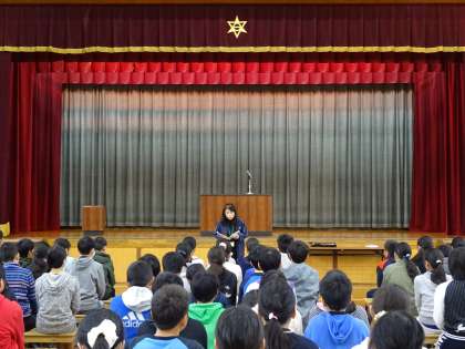最後に,1年間お世話になった音楽のスクールサポーターの先生から,子どもたちへの歌のプレゼントが贈られました。
