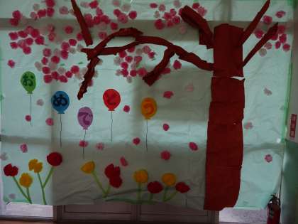 昇降口正面の壁面掲示物です。とても大きいです。