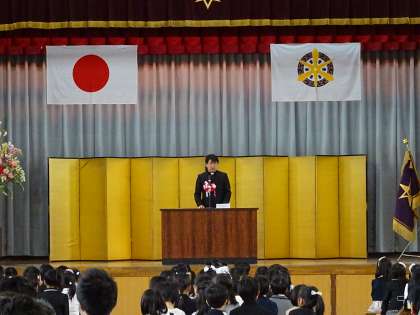 PTA会長の方からのお話に続き,児童を代表して2年生の子どもたちがお迎えの言葉と歌をプレゼントしてくれました。