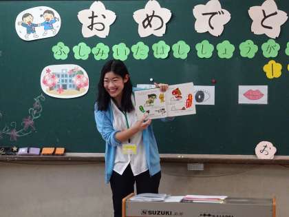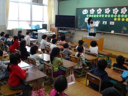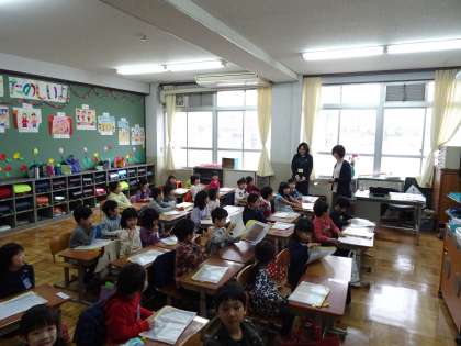 1年生の教室の様子です。初日ということで,トイレの使い方やプリントの折り方,連絡袋への入れ方などを学んでいました。
