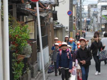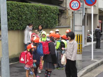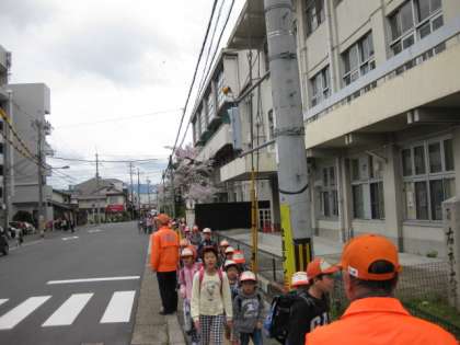 見守る会の方や,PTA地域委員さんに見守られながらの登校です。たくさんの方々に,児童の安全を確保していただきありがたいです。