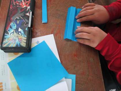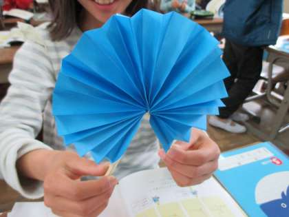 角の概念を学ぶため,折り紙で扇を作りました。