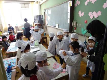 ♪1年生 給食当番を待つ間に