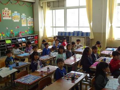 1年生は,給食当番が戻ってくるまで,静かに待てていました。