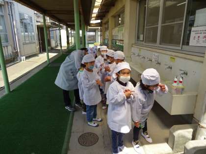 しっかりと手洗いをして,一列に並んで挨拶をしていました。