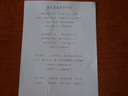 合唱曲でしょうか。2年生は,「まんまるスマイル」という曲を歌っていました。