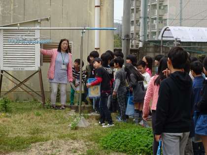 百葉箱を使った気温測定の仕方や春の植物の観察をしていました。
