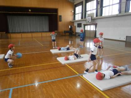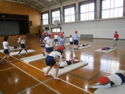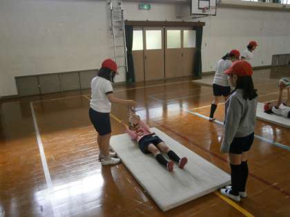 4年生は体育科で体ならし運動をしました。