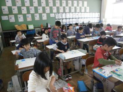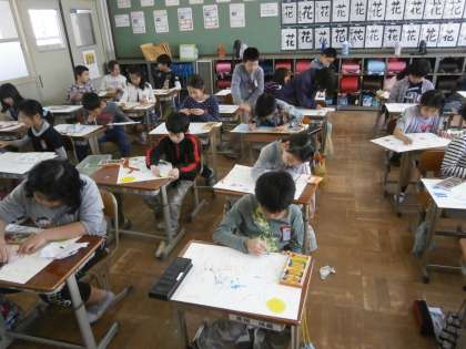 4年生は図画工作科で絵の具を使って模様を作りました。