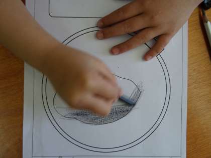 1年生は,アサガオの種を観察しました。色や形,触り心地などを虫眼鏡を使って観察しました。